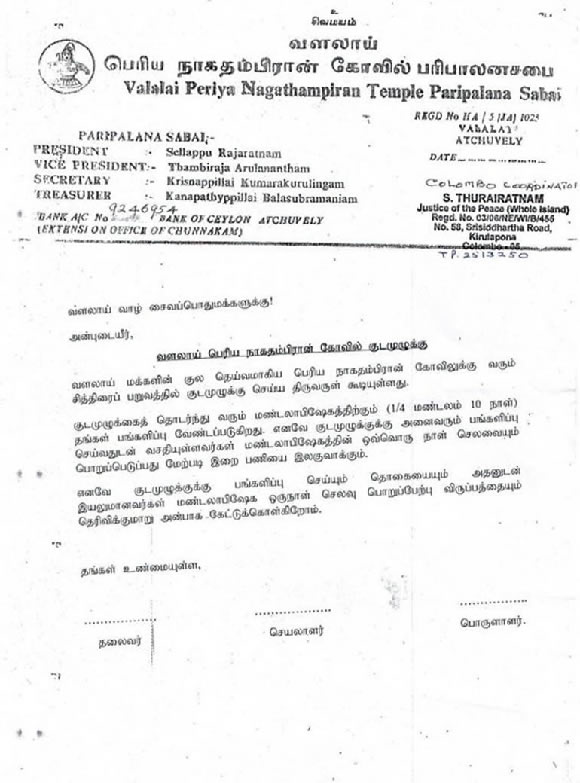 தேர்த்திருவிழா 2014, வளலாய் பெரிய நாகதம்பிரான் மண்டலாபிஷேகம்