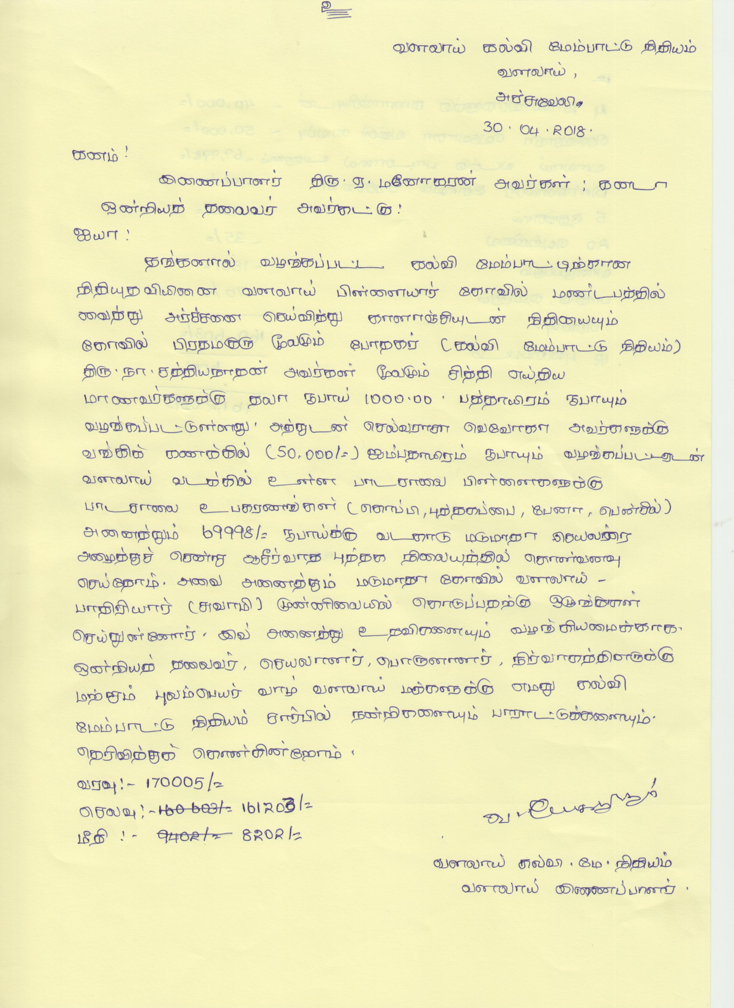 வளலாய் ஒன்றுகூடல் 2016 இல் - நன்றி உரையின் ஒரு பகுதி