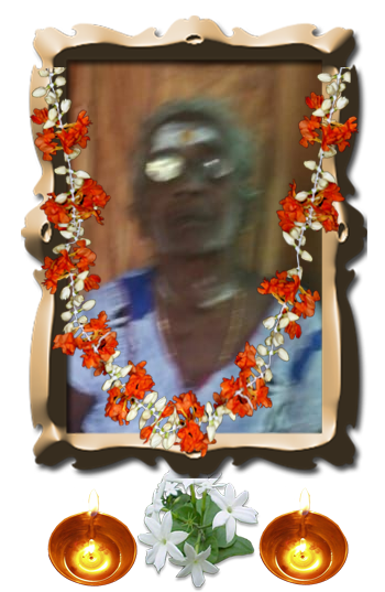 காயத்திரி (கனடா), அருணா, லதா , சுதா, பத்மராணி மற்றும் காலஞ்சென்ற வசந்தா ஆகியோரின் பெரியம்மாவும் விமலேந்திரனின் (கனடா) பாசமிகு மாமியும்