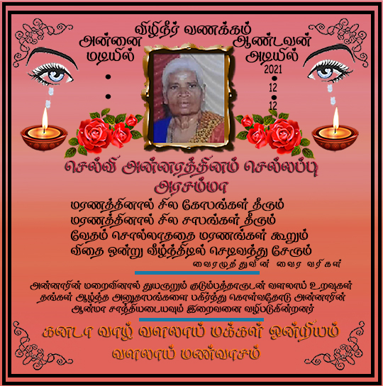 மறைவு ஆகஸ்ட் 23 2019(ஆவணி 06)