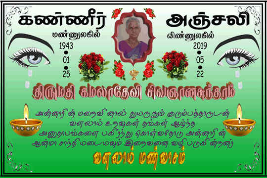 மறைவு ஆகஸ்ட் 23 2019(ஆவணி 06)