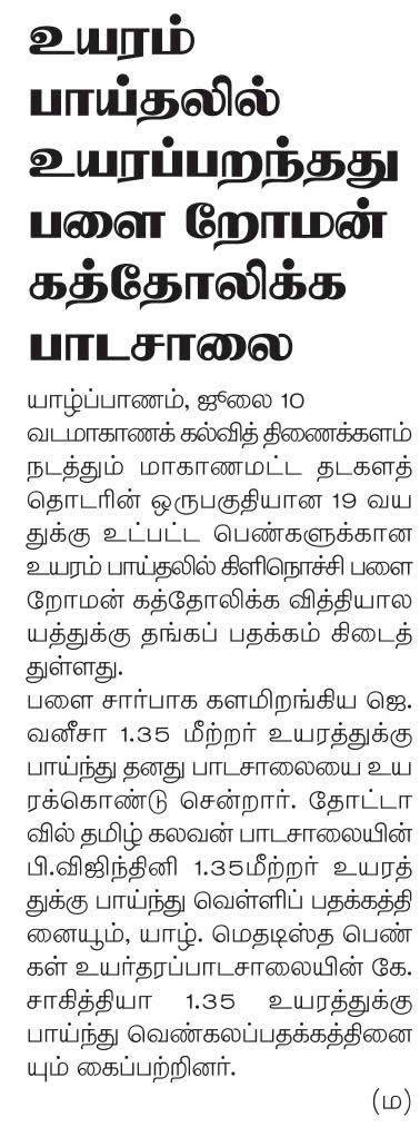 வடமாகாண கல்வித்திணைக்களத்தினால் நடாத்தப்படும் மகாணமட்ட தடகளத் தொடரில் 19 வயதுக் கீழ் பெண்களுக்கான உயரம் பாய்தல் போட்டியில் தங்கப்பதக்கம் வென்ற பளை றோமன் கத்தோலிக்க தமிழ் கலவன் பாடசாலையில் உடல் கல்வி ஆசிரியராகப் பணிபுரிபவர் எமது தொடர்பாளரும் வளலாயைச் சேர்ந்தவருமான நாராயாணசாமி தவக்குமார் (குமரன்) என்பதை புலம் பெயர் நிலங்களில் வாழும் வளலாய் உறவுகளுடன் பகிர்ந்து கொள்வதில் வளலாய் இணையம் பெருமிதம் அடைவதோடு ஆசிரியருக்கு எமது வாழ்த்துக்களையும் பாராட்டுக்களையும் தெரிவித்துக் கொள்கின்றது.