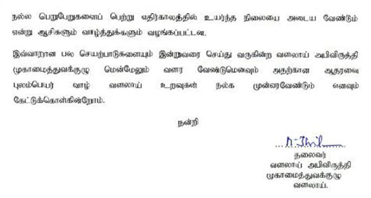 வளலாய் ஒன்றுகூடல் 2016 இல் - நன்றி உரையின் ஒரு பகுதி